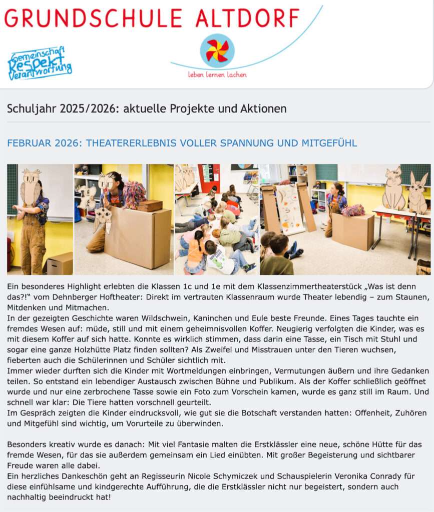 Ein Bericht über unsere Schularbeit auf der Homepage der Grundschule Altdorf 🙂