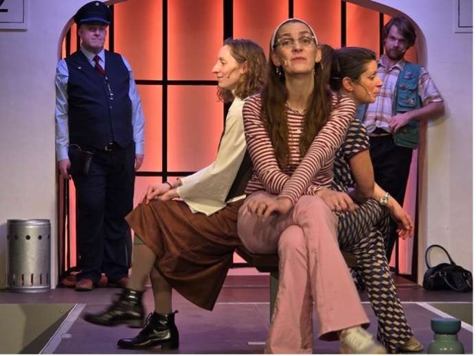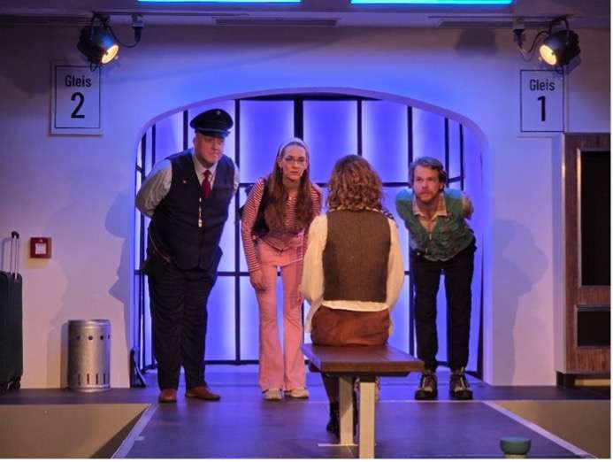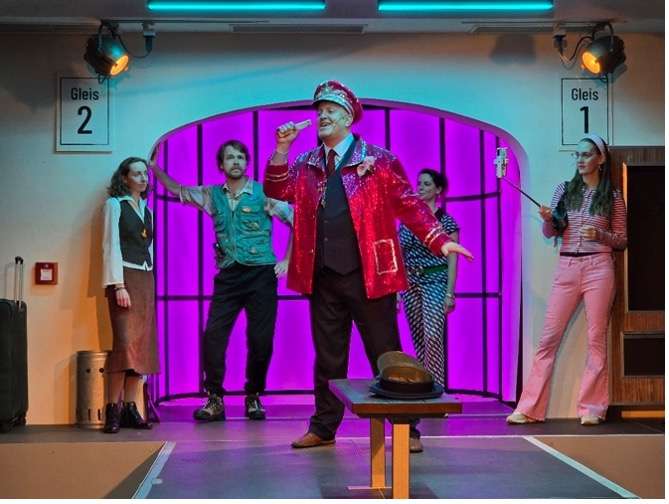 Ein buntes Völkchen, gestrandet am Bahnsteig, hoffnungsvoll den Durchsagen lauschend, erzählt, singt, tanzt von Wünschen und ungelebten Träumen.
